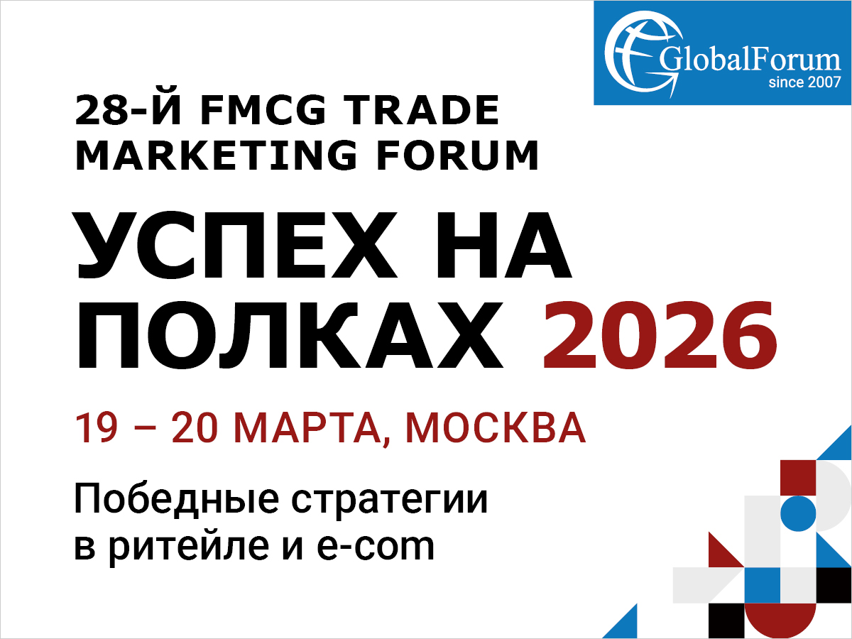 Приглашаем вас на 28-й FMCG TRADE MARKETING FORUM “УСПЕХ НА ПОЛКАХ 2026”, который пройдет 19-20 марта 2026 года в Москве.